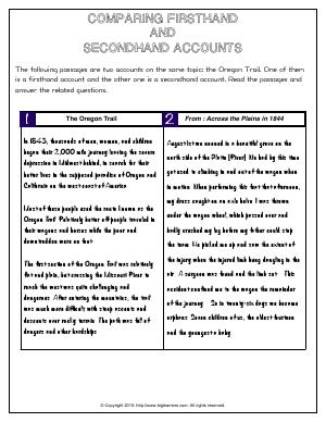 The passages in this worksheet are two accounts on the same topic: the Oregon Trail. One of them is a firsthand account and the other one is a secondhand account.
