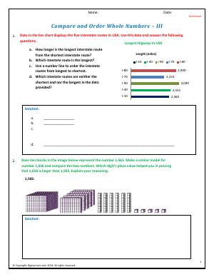 Practice comparing and ordering whole numbers using place value. Compare the length from various US highways using a graph.