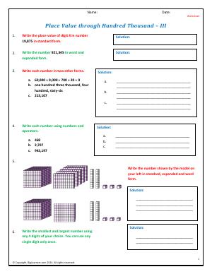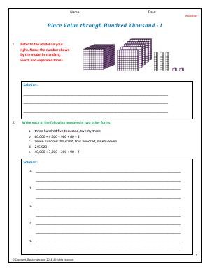 Category: Whole Numbers and Operations Place Value Place Value through Hundred Thousands