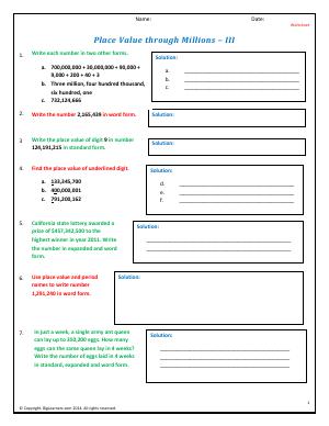Worksheet contains a collection of problems that require finding the place value of digits in a number. More practice to help you master writing numbers in various forms.