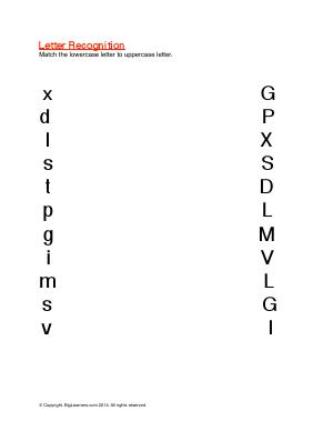 Please visit Alphabet and Letter Recognition to browse more worksheets in the same area. View the full list of topics for this grade and subject categorized by common core standards or in a traditional way.