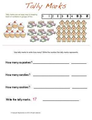 Count the sweet treats, use tally marks and the number form to show the correct number of each treat.